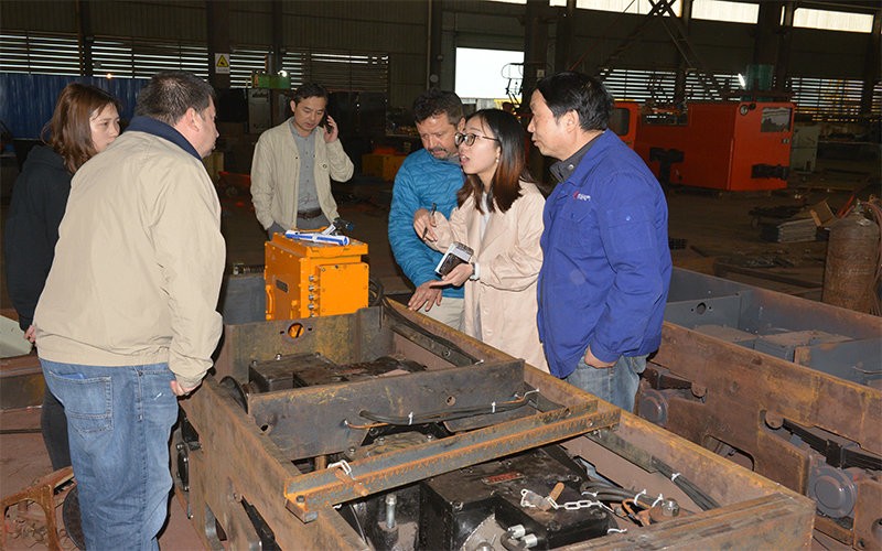 歡迎南美客戶來廠考察湘潭礦用電機車的性能。